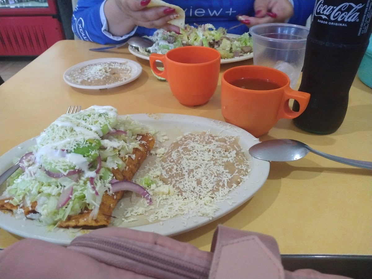 The menu focuses on classic Mexican comfort food, prepared in a way that feels honest and satisfying. One of the standout dishes is the Enchiladas Mexicanas, served with rich flavors that balance spice and warmth perfectly. They arrive hot, generously portioned, and clearly made with care. Equally popular is the Torta de Pierna, a hearty sandwich packed with tender pork that hits the spot whether you’re stopping by for a quick bite or settling in for a longer meal. For something lighter but just as flavorful, the Tostada de Pierna delivers crunch, freshness, and bold seasoning in every bite.